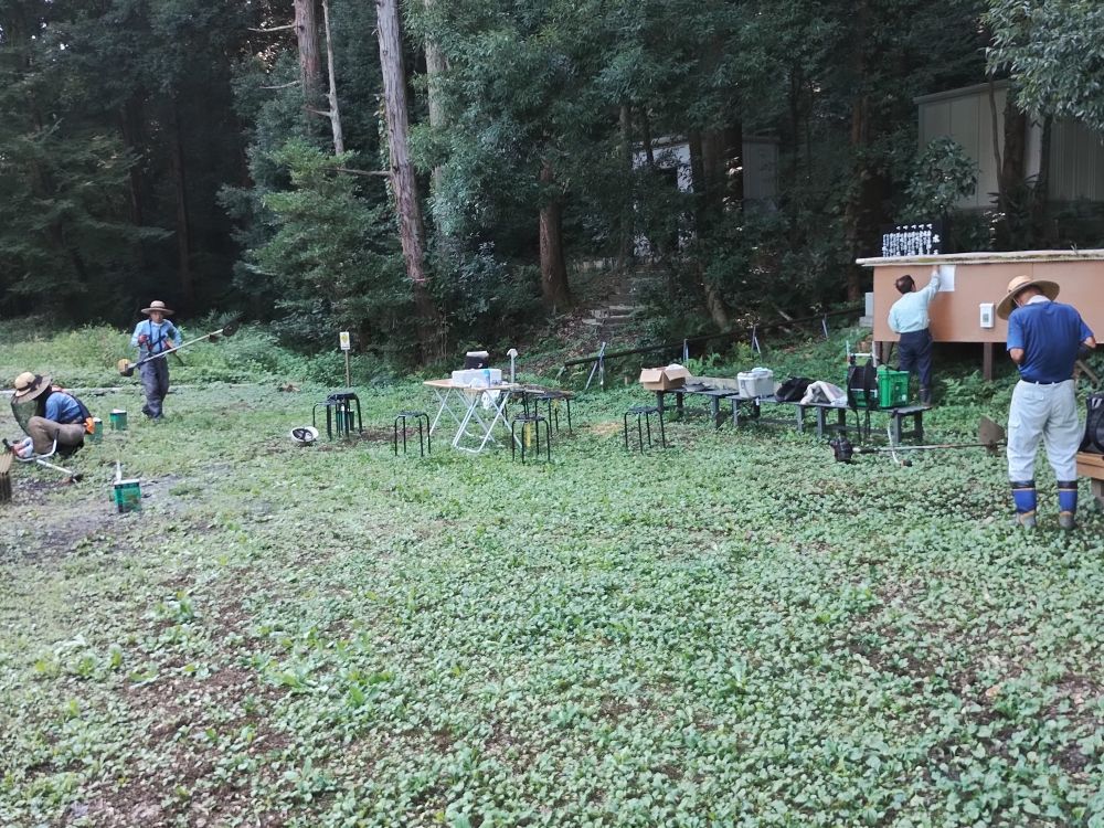 8月27日(水)午前8時に会員7名と賛助会員企業よりの6名が集合し、活動エリア内のあぜ道を中心に除草作業を行いました。早朝より快晴の天気によりぐんぐんと気温が上昇しましたが、途中休憩を摂りながらの2時間作業により、野木山緑地公園一帯と中央広場周辺が大変綺麗になりました。作業後は冷たく冷やした梨と飲み物で疲れを癒し、暫しの歓談後に解散となりました。